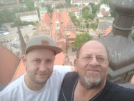 Links mein Neffe Erik auf dem Turm der Katharinenkirche in Danzig. Im